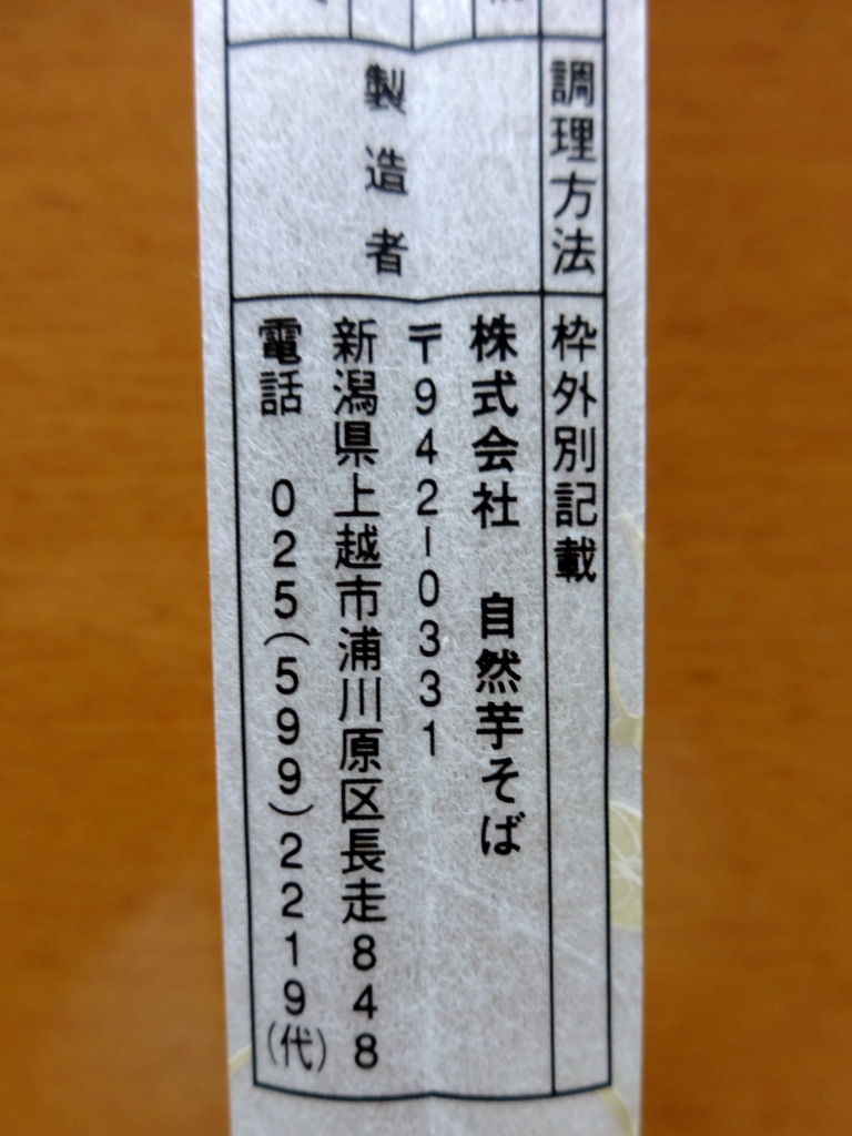 新潟県自然芋(じねんじょ)そばの(極上)匠味自然芋そばを購入してみました。