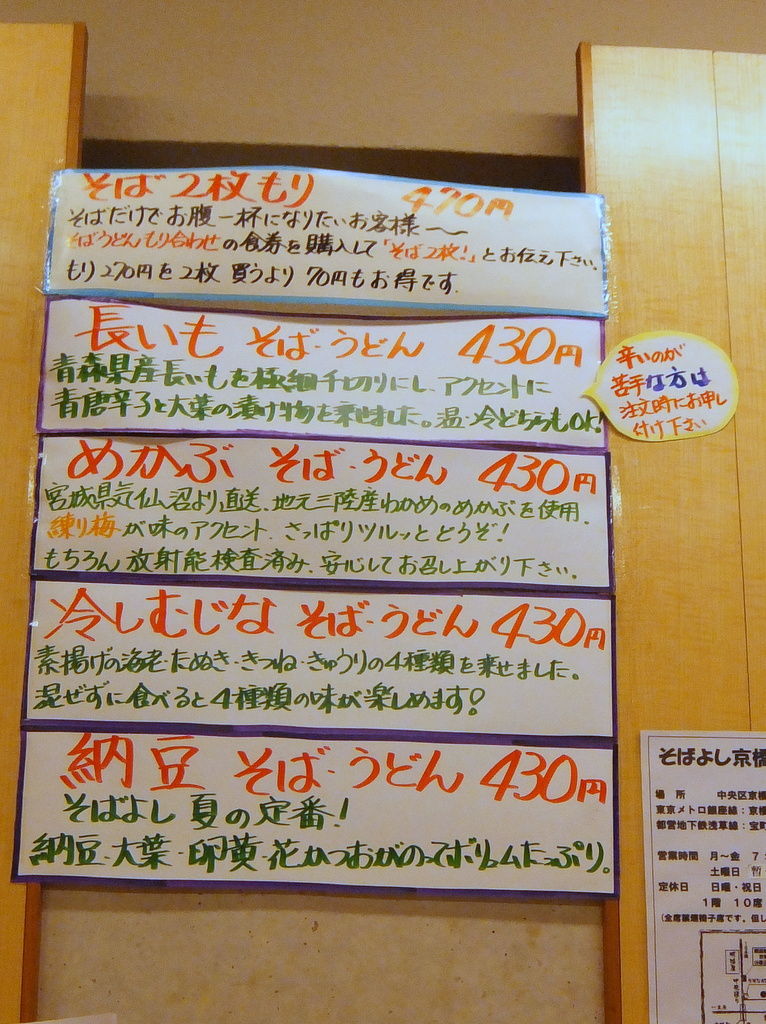 じょじょさんは、冷し長いもそば430円、きつね60円でした。