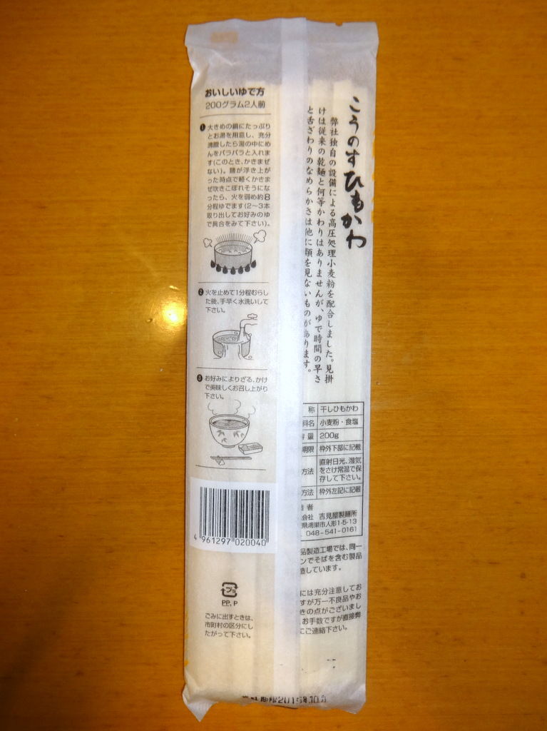 埼玉県鴻巣市、吉見屋製麺所のひもかわを頂きましたので食べてみます。