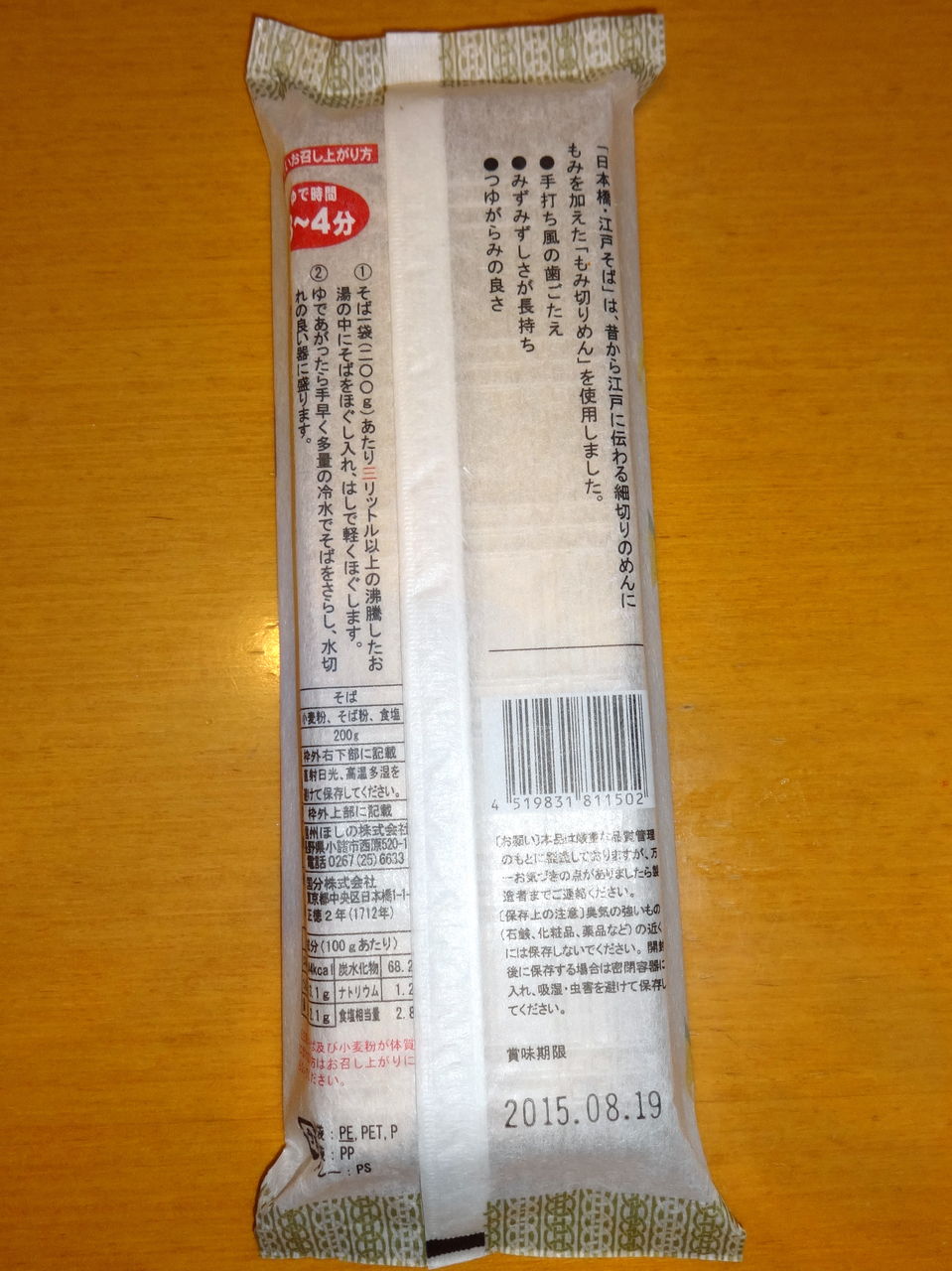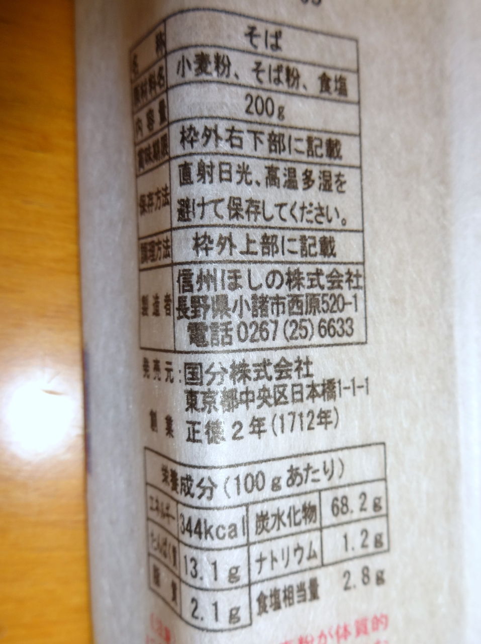 小麦粉、そば粉、食塩の表記。