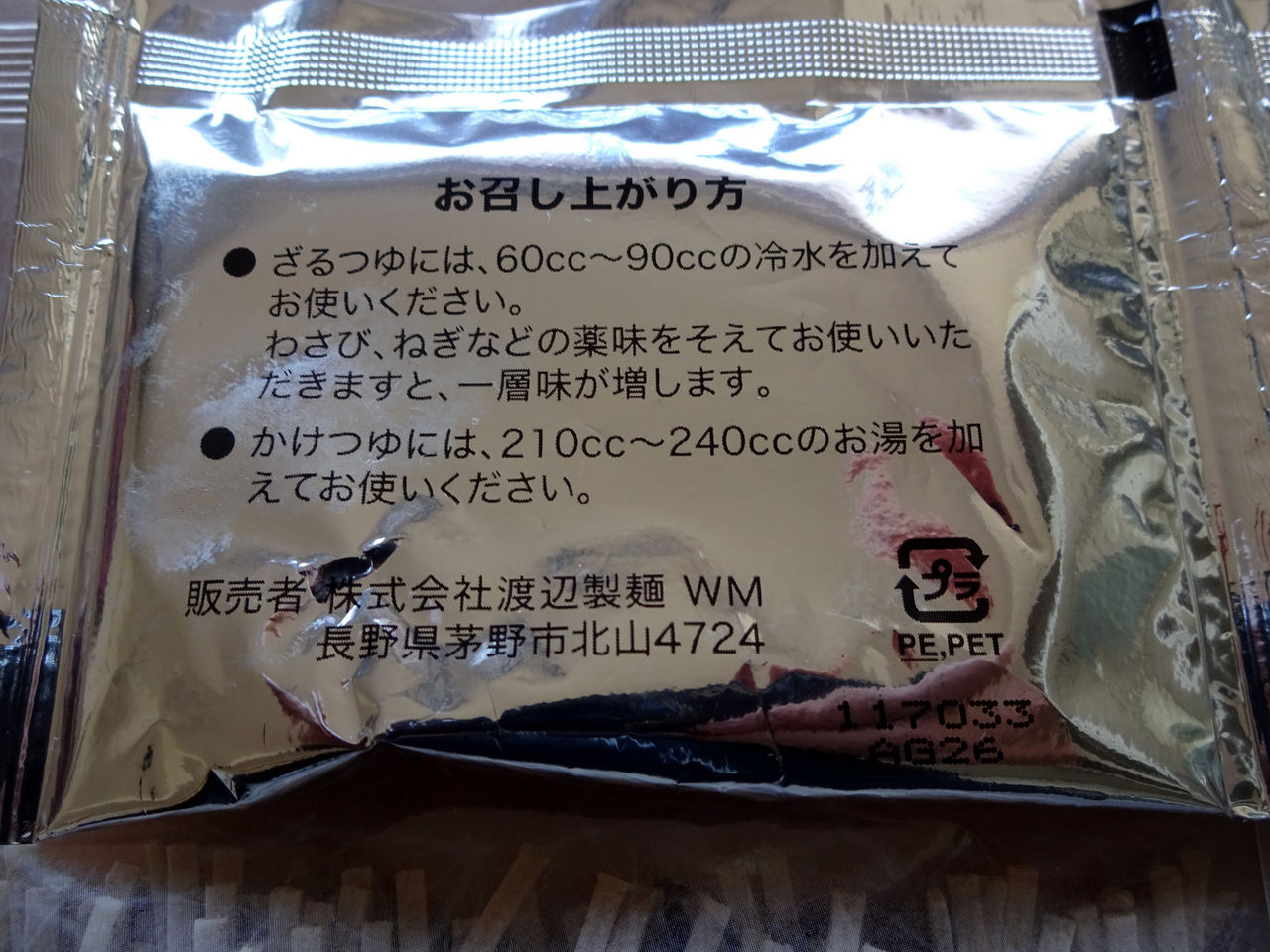 めん:小麦粉、そば粉、食塩、pH調整剤、加工でん粉(打ち粉)
