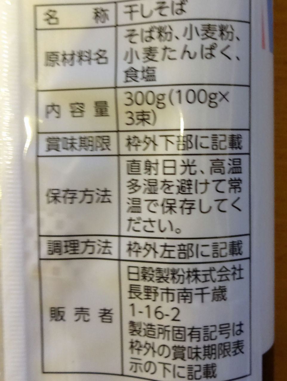 そば粉、小麦粉、小麦たんぱく、食塩の表記。