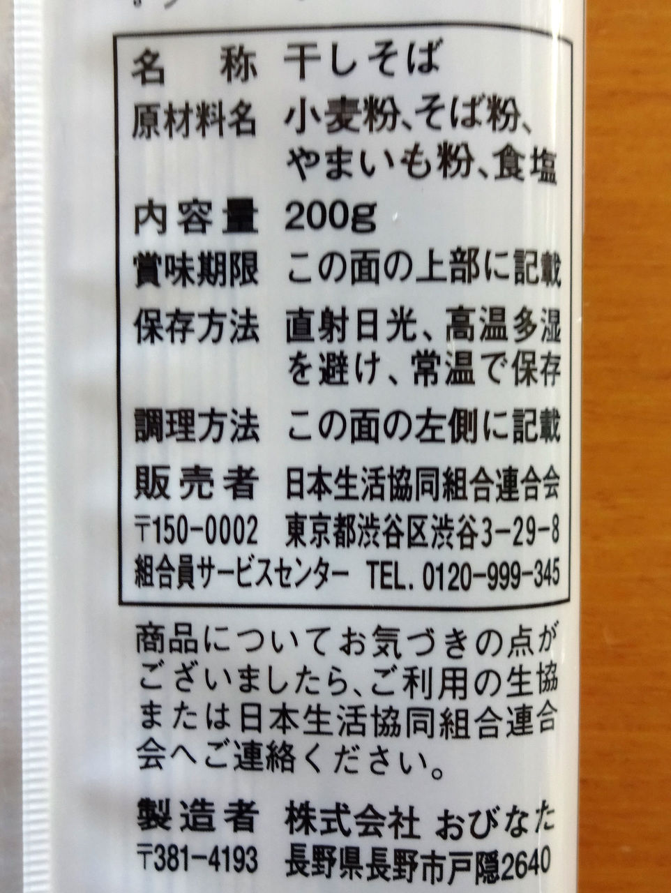 小麦粉、そば粉、やまいも粉、食塩の表記。