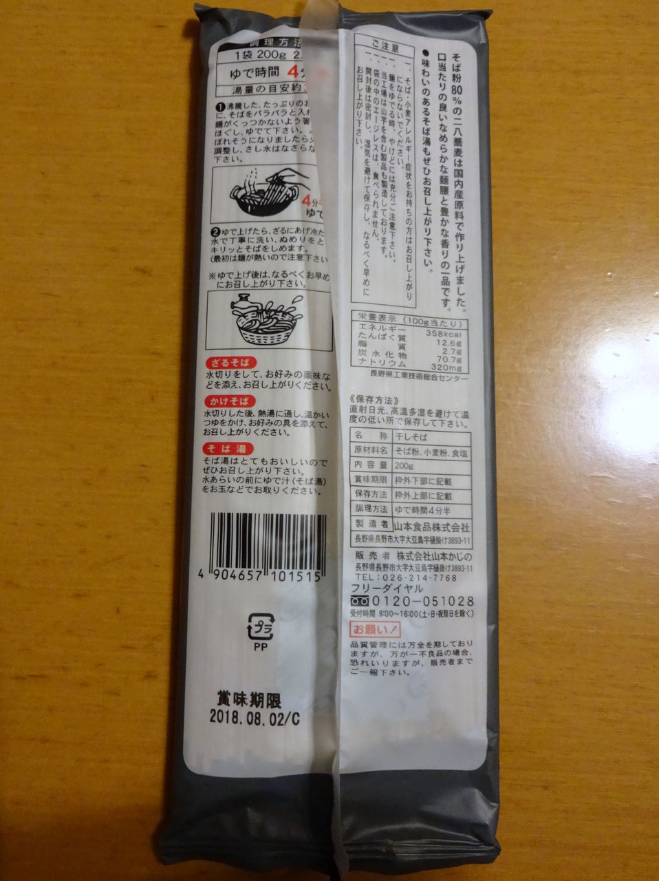 そば粉、小麦粉、食塩、の表記。