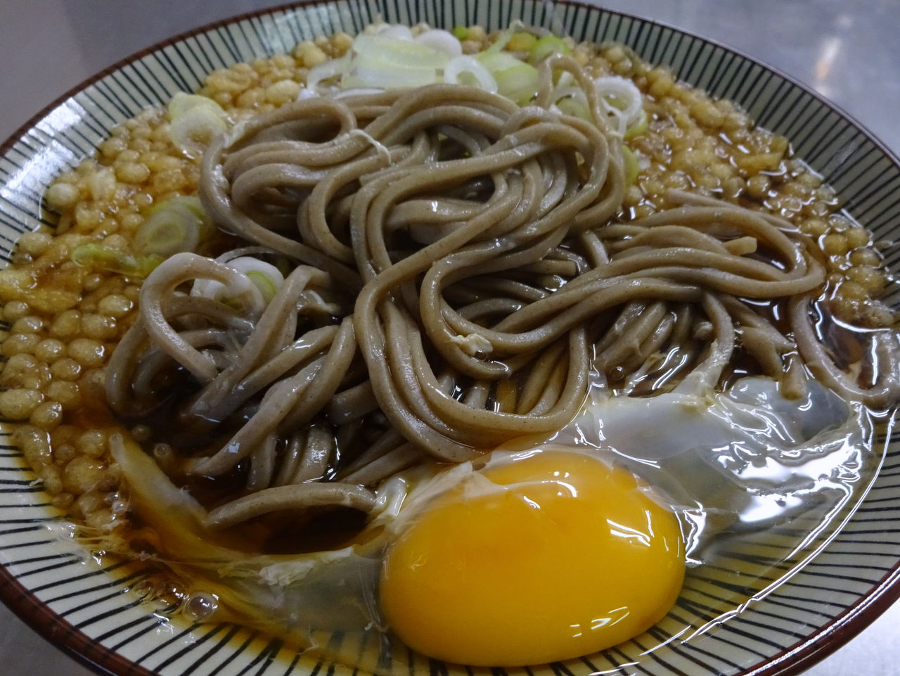 たぬき玉子蕎麦390円です。