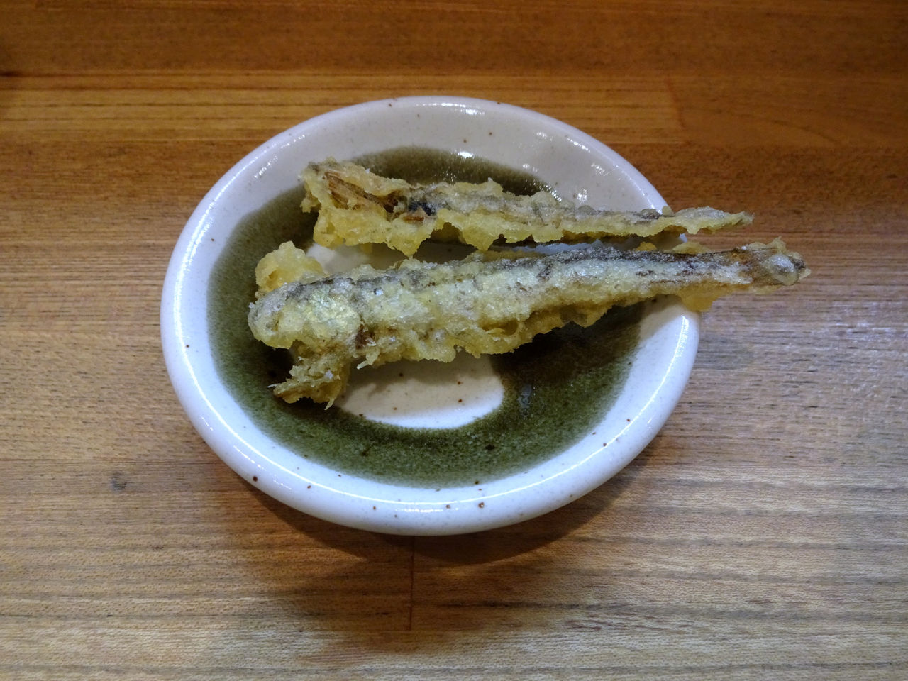 無事注文を済ませると、サービスで煮干しの天ぷらが提供されました。