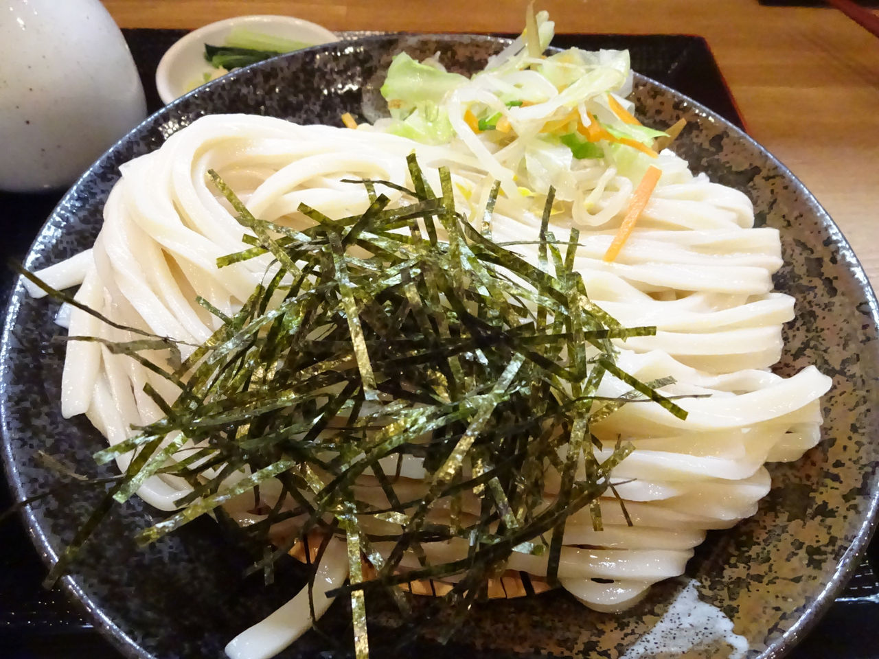 ざるうどん550円、大100円、かき揚げ100円です。